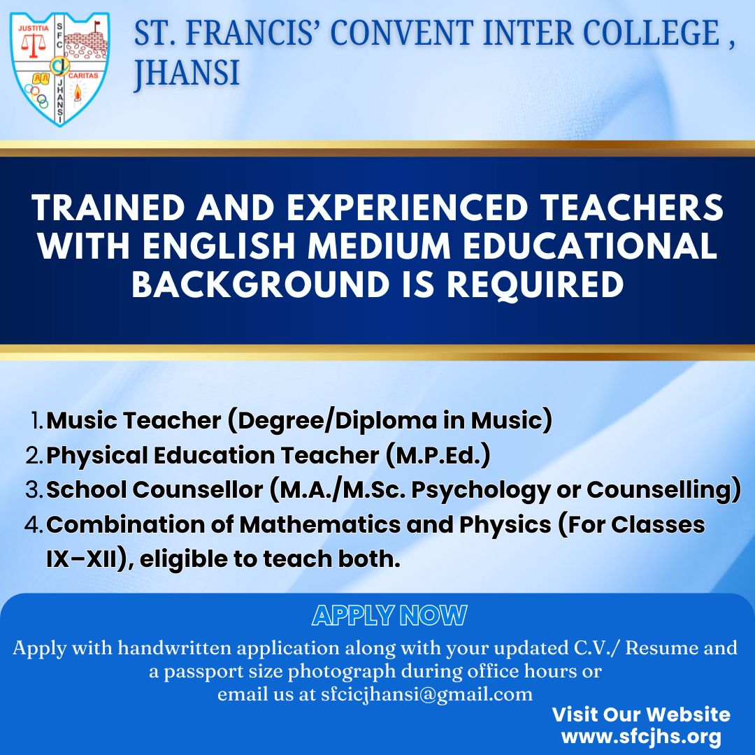 ST. FRANCIS' CONVENT INTER COLLEGE is one of the top-most English medium schools in Jhansi.Our school was founded in 1894 and it is affiliated to the ISC and ICSE Board and it has classes ranging from I to XII. Our School also includes pre-primary section.It is located in P.O. Box No. 1,67, Cantt, Jhansi, Uttar Pradesh - 284001.
