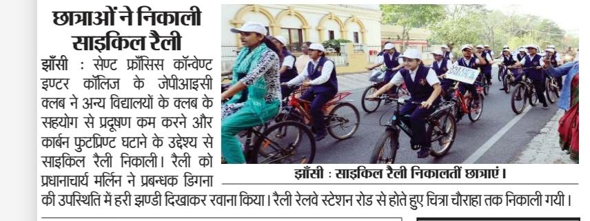 सेंट फ्रांसिस कॉन्वेंट इंटर कॉलेज में हरित भविष्य के लिए साइकिल रैली